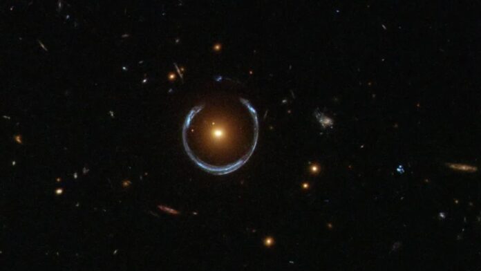 According to a statement from the University of Portsmouth, by measuring the gravitational lensing of light into an “Einstein horseshoe” caused by a background galaxy and also from the motions of stars orbiting the black hole (which are moving nearly 400 km/s), they estimated the mass of this black hole in detail; this direct approach can locate other missing ultramassive central supermassive black holes throughout the universe – including dormant, non-accreting ones.