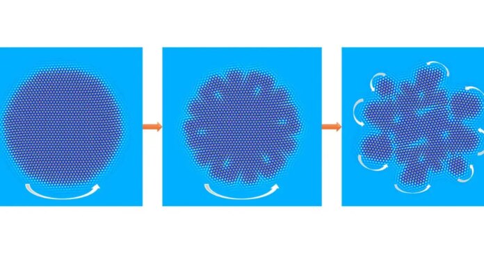 Moreover, they discovered that large crystals dominated by the transverse interaction will tend to fragment into smaller spinning crystals, while small ones grow until they reach a critical size. This is opposite to how normal crystal growth occurs – the crystal grows steadily under good conditions.