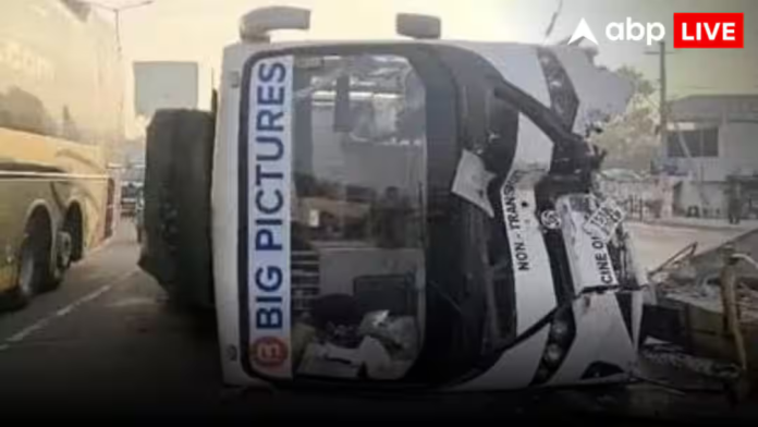 तेलंगाना की राजधानी हैदराबाद के बाहरी इलाके हयातनगर में शुक्रवार (9 जनवरी 2026) की सुबह तड़के एक बड़ा सड़क हादसा हो गया. फिल्म निर्माण दल (film crew) को लेकर विशाखापट्टनम से आ रही एक निजी बस पेड्डा अंबरपेट फ्लाईओवर के पास अनियंत्रित होकर पलट गई. इस दर्दनाक हादसे में बस चालक, उसके पिता और चालक दल के दो अन्य सदस्य घायल हो गए हैं. गनीमत रही कि हादसे के समय बस की गति और स्थिति के बावजूद कोई जनहानि नहीं हुई, लेकिन घटना ने फिल्म उद्योग के कर्मचारियों की सुरक्षा और लंबी दूरी की यात्राओं के जोखिम पर एक बार फिर बहस छेड़ दी है.