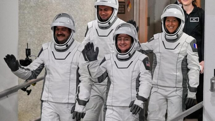 Moving in for eight to nine months are NASA’s Jessica Meir and Jack Hathaway, France’s Sophie Adenot and Russia’s Andrei Fedyaev.