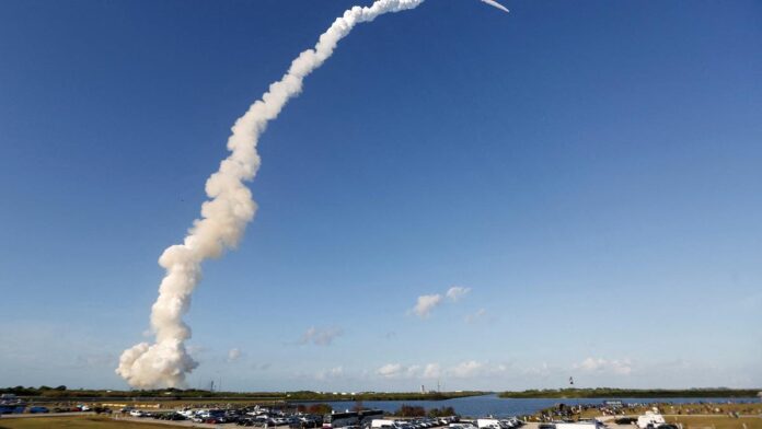 NASA’s Artemis II mission to fly by the moon, comprising of the Space Launch System (SLS) rocket with the Orion crew capsule, soars into the sky from the Kennedy Space Centre in Cape Canaveral, Florida, U.S. on Wednesday (April 1, 2026).