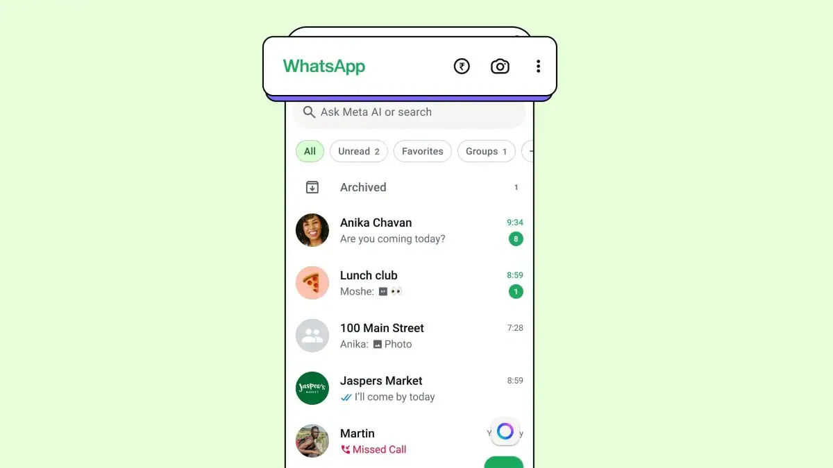 To make the payments accessible, WhatsApp has added a rupee (₹) icon to the home screen. This icon, which sits alongside the camera icon, allows users to access the payments section to carry out mobile recharges and access UPI for transferring money. It also serves as an entry point for metro ticketing services supported within WhatsApp. The rupee icon is also available within individual chats, allowing users to send payments directly while messaging.